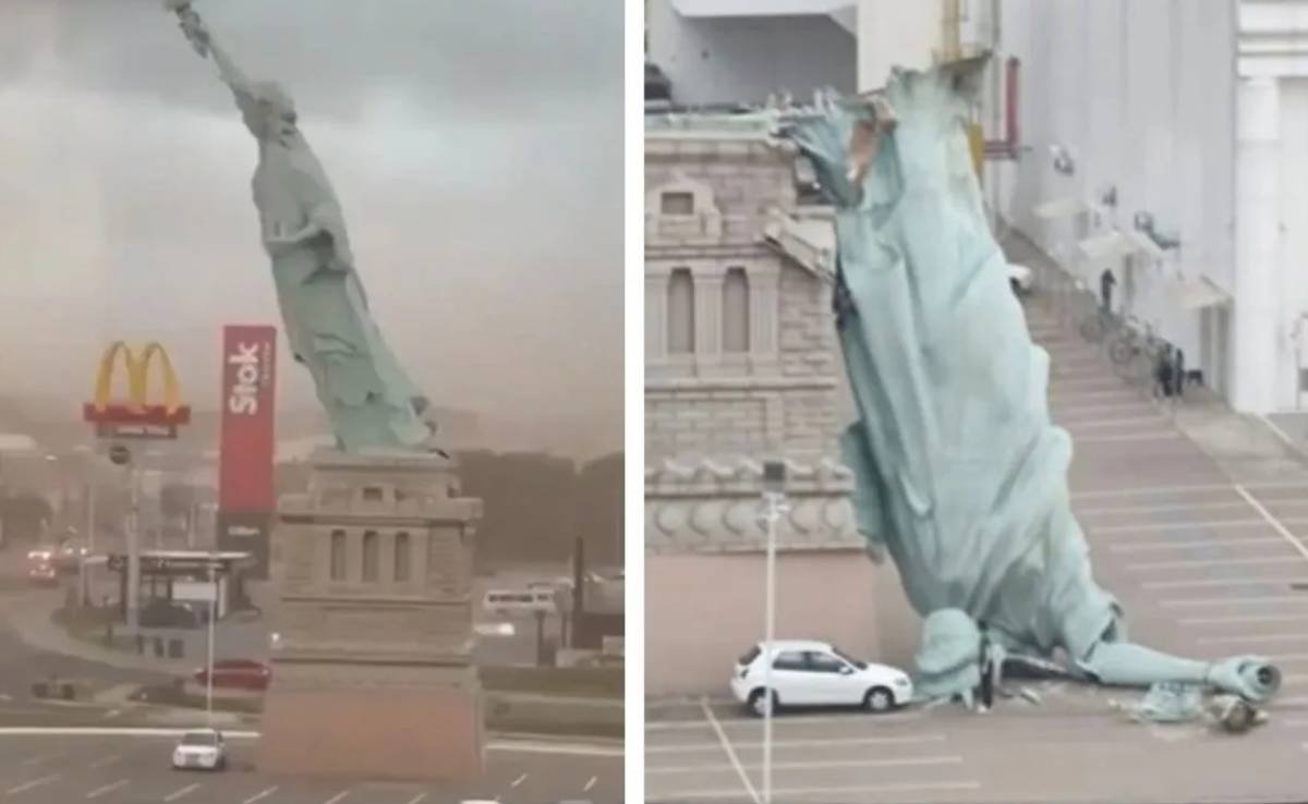 Dramatic Collapse: Storm Topples Iconic Statue of Liberty Replica in Southern Brazil